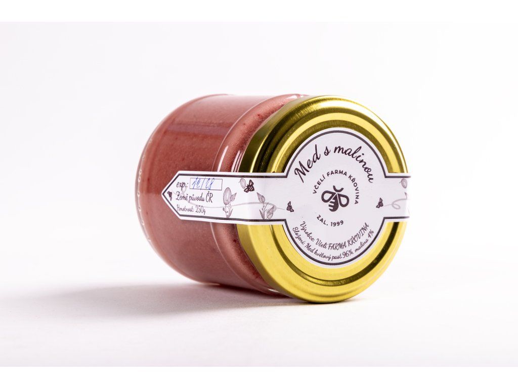 Pastovaný med s lyofilizovanými malinami. Složení med 98% lyofilizované maliny 2% , hmotnost 250g.